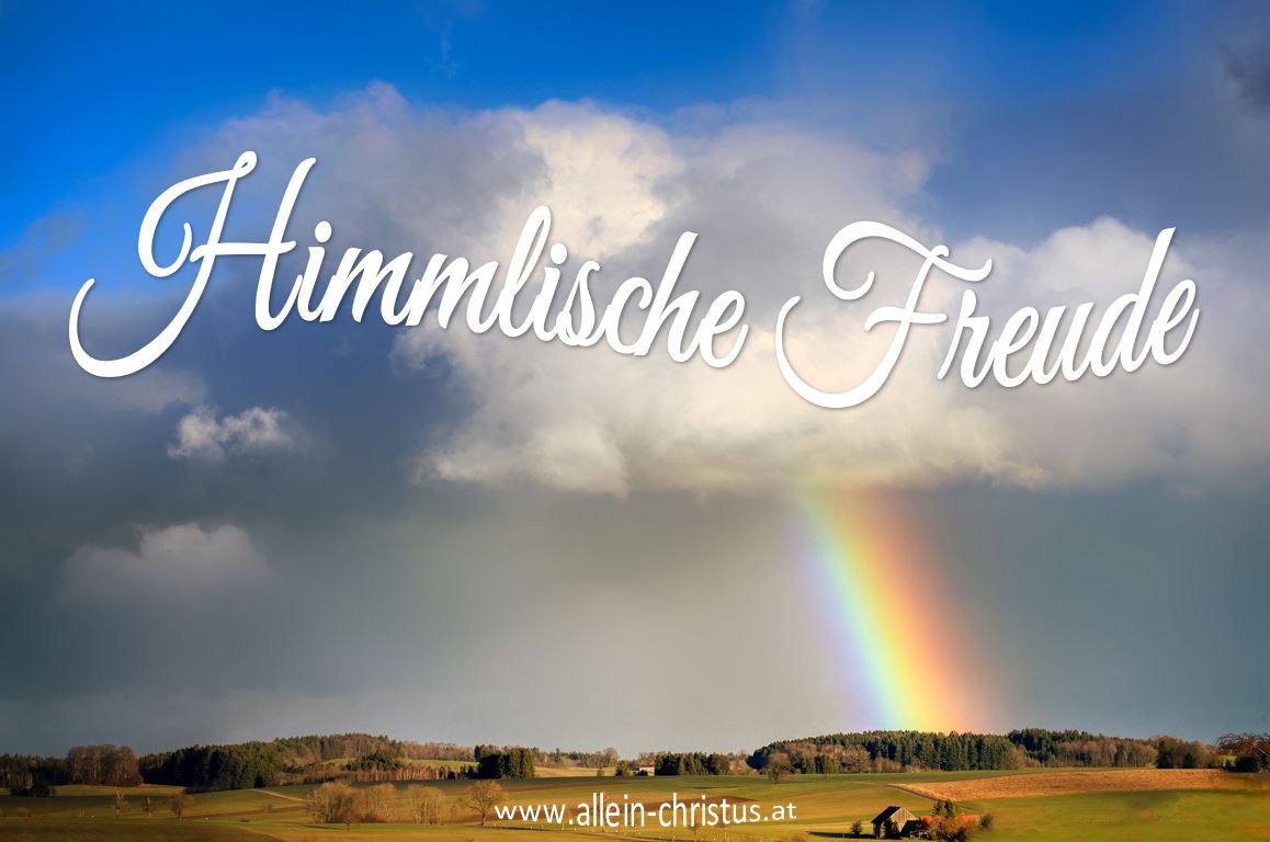 - Der Himmel, Ort der Freude: Ein Hochzeitsfest ist auch nach irdischen Maßstäben ein Anlass besonderer Freude. Der Himmel wird uns in der Bibel im Bild der Hochzeit als ein ewiges Fest der Freude beschrieben: »Lasset uns freuen und fröhlich sein und ihm die Ehre geben, denn die Hochzeit des Lammes ist gekommen, und seine Braut hat sich bereitet« (Offb 19,7). Jesus Christus, das Lamm Gottes, das geduldig die Sünde der Welt trug und sie am Kreuz tilgte, ist nun der Bräutigam und seine Gemeinde die Braut. Diese errettete Schar aus allen Völkern, Stämmen und Nationen beschreibt Jesus in Lukas 13,29: »Und es werden kommen von Osten und von Westen, von Norden und von Süden, die zu Tische sitzen werden im Reich Gottes.«